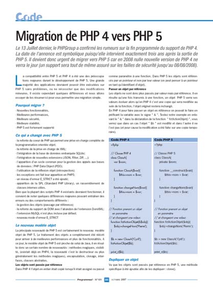 Migration de PHP 4 vers PHP 5