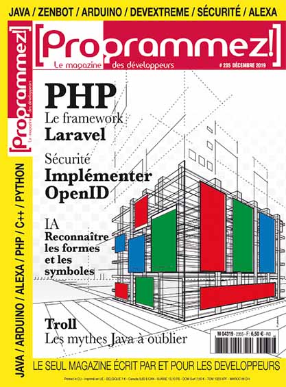 Dans programmez! papier n° 235 Paru le 29/11/2019 S'ABONNER Carrière Comment recruter et garder ses développeurs ? Lire la suite de Comment recruter et garder ses développeurs ? Concours Concours Amazon Alexa : le gagnant est… Lire la suite de Concours Amazon Alexa : le gagnant est… Roadmap Roadmap des langages & des IDE Lire la suite de Roadmap des langages & des IDE DevOps Nutanix Era : apporter aux bases de données l’agilité nécessaire au DevOps Lire la suite de Nutanix Era : apporter aux bases de données l’agilité nécessaire au DevOps Evènement Rétro vers le futur Lire la suite de Rétro vers le futur Sécurité Security by design Lire la suite de Security by design PHP Mon premier projet Laravel 1 Lire la suite de Mon premier projet Laravel Test Les différents tests pour les dévs Lire la suite de Les différents tests pour les dévs Authentification OpenIdConnect 1 Lire la suite de OpenIdConnect Mémoire A la recherche de la mémoire perdue : la mémoire, un gruyère ? Lire la suite de A la recherche de la mémoire perdue : la mémoire, un gruyère ? I.A Reconnaissance de symbole avec IA 1 Lire la suite de Reconnaissance de symbole avec IA Python Pygame : les principales notions à connaître pour développer vos jeux vidéo en Python 1 Lire la suite de Pygame : les principales notions à connaître pour développer vos jeux vidéo en Python Composants DevExtreme : une suite de composants à adopter de toute urgence pour développer des web apps 1 Lire la suite de DevExtreme : une suite de composants à adopter de toute urgence pour développer des web apps Jeux Haxe 4 L’isomorphisme cross-plateforme Lire la suite de Haxe 4 L’isomorphisme cross-plateforme Outils Apprendre GIT en lignes de commandes dans Visual Studio 2019 et GitHub Lire la suite de Apprendre GIT en lignes de commandes dans Visual Studio 2019 et GitHub Java Les 5 plus grands mythes entourant Java enfin démystifiés Lire la suite de Les 5 plus grands mythes entourant Java enfin démystifiés Chatbot Zenbot : Un chatbot qui répond aux questions en consultant l’API Search de Stack Overflow 1 Lire la suite de Zenbot : Un chatbot qui répond aux questions en consultant l’API Search de Stack Overflow Arduino Arduino : on crée un mini-debugger ! 1 Lire la suite de Arduino : on crée un mini-debugger ! Matériel Maixduino de Sipeed Lire la suite de Maixduino de Sipeed