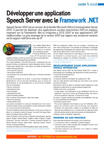 • Lire la suite de Développer une application Speech Server avec le framework.net
