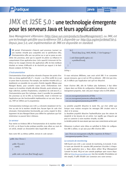 JMX et J2SE 5.0 : une technologie émergente pour les serveurs Java et leurs