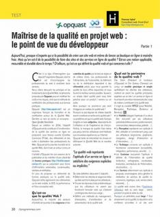 Maîtrise de la qualité en projet web : le point de vue du développeur