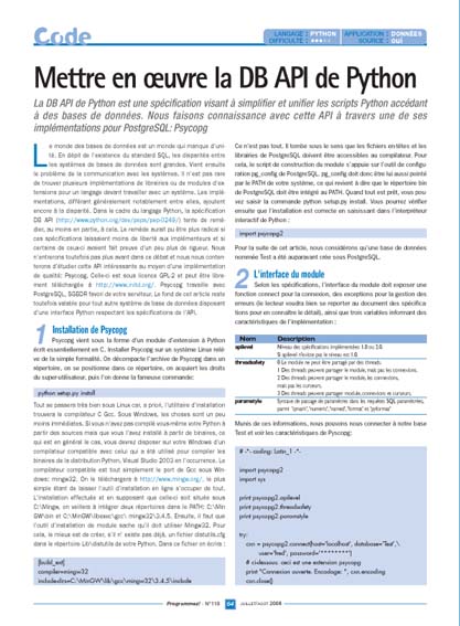 • Lire la suite de Mette en oeuvre la DB API de Python