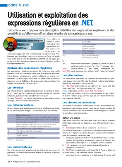 Utilisation et exploitation des expressions régulières en .Net