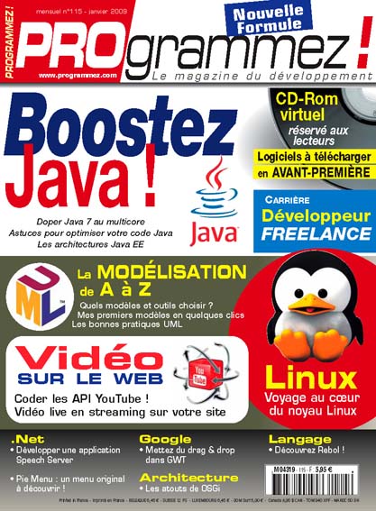 Dans programmez! PDF n° 115 Paru le 01/01/2009 S'ABONNER Evénements Au coeur du noyau Linux Lire la suite de Au coeur du noyau Linux Dossier Boostez java ! Lire la suite de Boostez java ! Projet La modélisation de A à Z Lire la suite de La modélisation de A à Z Développement web Dopez votre site web à la vidéo Lire la suite de Dopez votre site web à la vidéo Carrière Epitech, le réseau et la passion Lire la suite de Epitech, le réseau et la passion Travailler en freelance Lire la suite de Travailler en freelance Code Un menu original : le Pie Menu ! Oui Lire la suite de Un menu original : le Pie Menu ! Développer une application Speech Server avec le framework.net Lire la suite de Développer une application Speech Server avec le framework.net L’architecture et la technologie OSGI Lire la suite de L’architecture et la technologie OSGI Programmez OpenGL avec le langage Ruby (2e partie) Oui Lire la suite de Programmez OpenGL avec le langage Ruby (2e partie) A la découverte de Rebol Oui Lire la suite de A la découverte de Rebol Réaliser un composant " glisser-déposer " avec GWT Lire la suite de Réaliser un composant " glisser-déposer " avec GWT