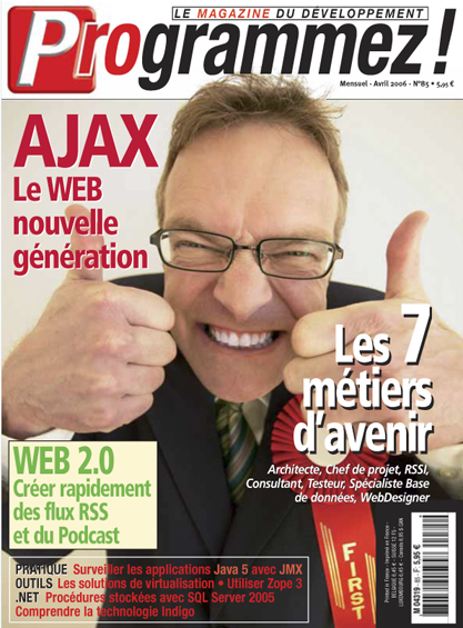 Dans programmez! PDF n° 85 Paru le 01/04/2006 S'ABONNER Tests PHP Edit 2.0 : l’autre IDE PHP Lire la suite de PHP Edit 2.0 : l’autre IDE PHP Intellij IDEA, un IDE Java différent Lire la suite de Intellij IDEA, un IDE Java différent Dossier Ajax : Le web nouvelle génération Oui Lire la suite de Ajax : Le web nouvelle génération Carrière Avez-vous le bon profil ? Lire la suite de Avez-vous le bon profil ? Technologie WCF et SCA, les nouveaux frameworks de communication Lire la suite de WCF et SCA, les nouveaux frameworks de communication Comprendre les portlets Java (2e partie) Lire la suite de Comprendre les portlets Java (2e partie) La virtualisation pour le développeur Lire la suite de La virtualisation pour le développeur De Zope 2 à Zope 3 Lire la suite de De Zope 2 à Zope 3 Pratique JMX et J2SE 5.0 : une technologie émergente pour les serveurs Java et leurs Oui Lire la suite de JMX et J2SE 5.0 : une technologie émergente pour les serveurs Java et leurs Procédures stockées en .Net avec SQL Server 2005 Lire la suite de Procédures stockées en .Net avec SQL Server 2005 Podcasting et RSS en pratique Oui Lire la suite de Podcasting et RSS en pratique Ecrire une application d’installation sous Windows Oui Lire la suite de Ecrire une application d’installation sous Windows Développer des applications Eclipse RCP Oui Lire la suite de Développer des applications Eclipse RCP