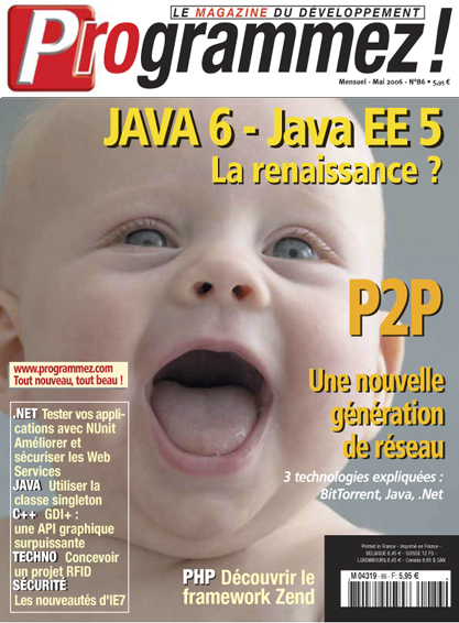 Dans programmez! PDF n° 86 Paru le 01/05/2006 S'ABONNER Tests REALbasic : l'autre basic Lire la suite de REALbasic : l'autre basic BackBase Lire la suite de BackBase Sécurité Internet Explorer 7 : le renouveau Lire la suite de Internet Explorer 7 : le renouveau Cas d'entreprise Feriscope, l'Intranet de RFF, revu et refondu Lire la suite de Feriscope, l'Intranet de RFF, revu et refondu Focus P2P : Créer un réseau nouvelle génération Oui Lire la suite de P2P : Créer un réseau nouvelle génération Dossier Java 6 et Java EE 5 : la renaissance ? Oui Lire la suite de Java 6 et Java EE 5 : la renaissance ? Carrière Java, première compétence métier Lire la suite de Java, première compétence métier Technologie Le contrôle qualité des applications Java Lire la suite de Le contrôle qualité des applications Java Comment développer une solution RFID Lire la suite de Comment développer une solution RFID Pratique Zend Framework : un outil prometteur Lire la suite de Zend Framework : un outil prometteur Tests unitaires avec Nunit Lire la suite de Tests unitaires avec Nunit Sécuriser un service Web avec les WSE 3.0 Lire la suite de Sécuriser un service Web avec les WSE 3.0 Le singleton, un objet unique en son genre Lire la suite de Le singleton, un objet unique en son genre Se familiariser avec GDI Oui Lire la suite de Se familiariser avec GDI